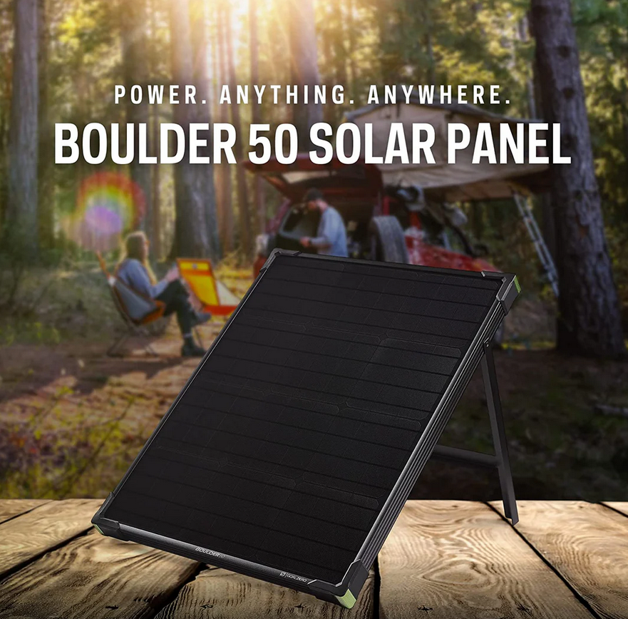 El Goal Zero Boulder 50 es un panel solar montable de 50 W diseñado para quienes buscan una fuente de energía portátil, fiable y resistente, ideal para exteriores, campamentos, estaciones remotas o emergencias. Construido con vidrio templado resistente y un marco de aluminio reforzado, este panel está pensado tanto para instalaciones permanentes como para uso portátil.
