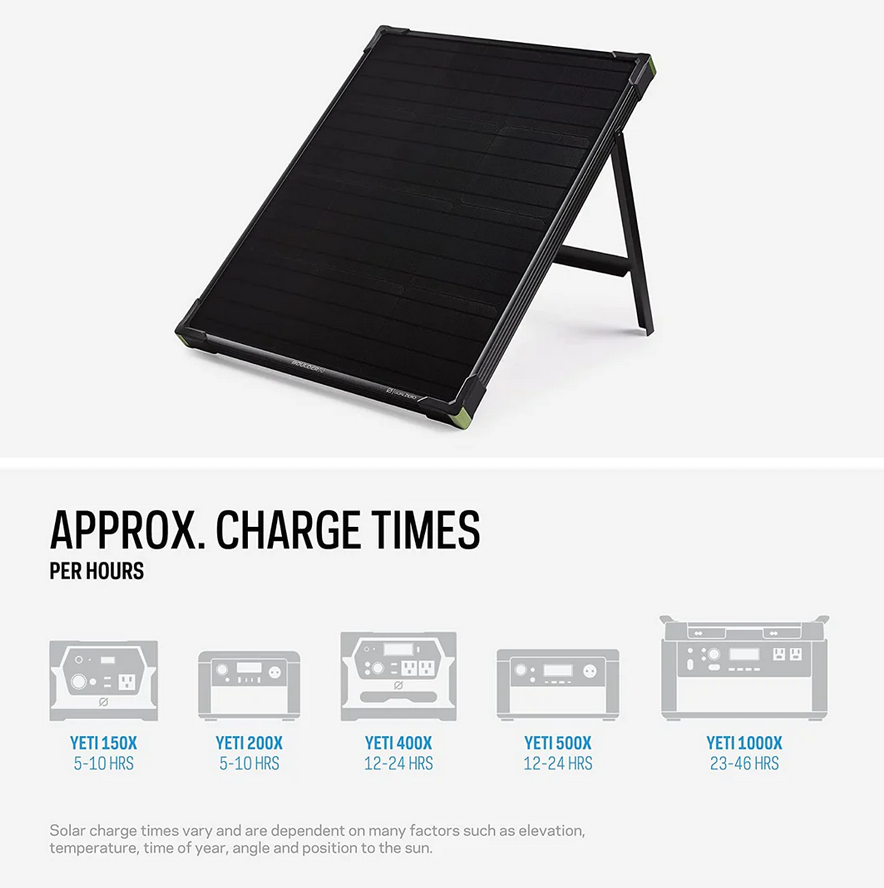 Es ideal para recargar estaciones de energía portátiles o baterías compatibles (como las de la gama “Yeti” u otras de la marca), convirtiéndolo en una solución versátil para quienes necesitan energía limpia y renovable sin depender de la red eléctrica.
