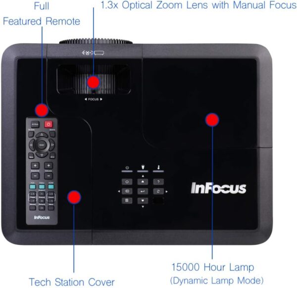 El InFocus IN2136 es un proyector DLP profesional diseñado para entornos corporativos y educativos que requieren alta luminosidad y proyección nítida incluso en habitaciones bien iluminadas.